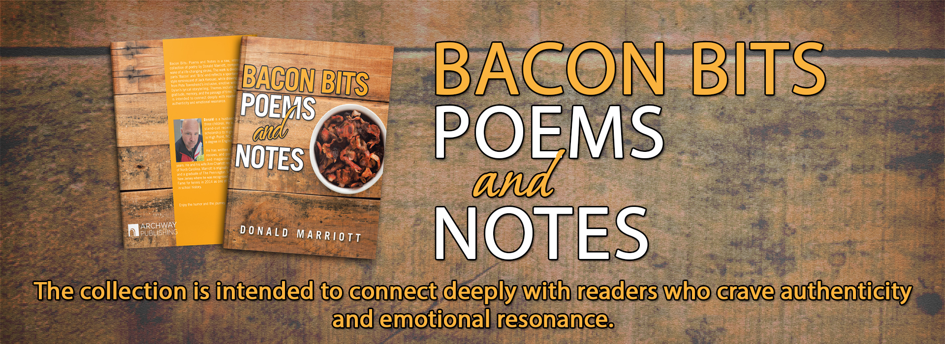 Bacon Bits: Poems and Notes is a raw, introspective collection of poetry by Donald Marriott, composed in the wake of a life-changing stroke. The work is divided into two parts ‘Bacon’ and ‘Bits’-and reflects a spontaneous prose style reminiscent of Jack Kerouac, while drawing inspiration from Pete Townshend’s inclusive, emotive writing and Bob Dylan’s lyrical storytelling. Themes include anxiety, love, gratitude, memory, and the passage of time. The collection is intended to connect deeply with readers who crave authenticity and emotional resonance.